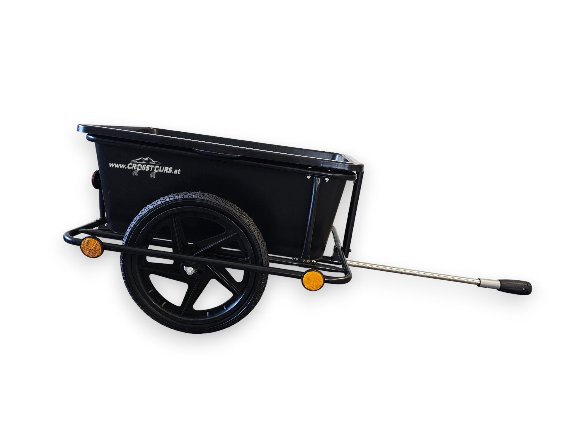 Abmessungen des Anhängers ohne Deichsel ca. 66×77 cm.